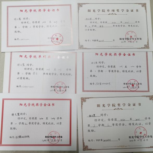 2020-2021学年第二学期获德育单项奖学金;