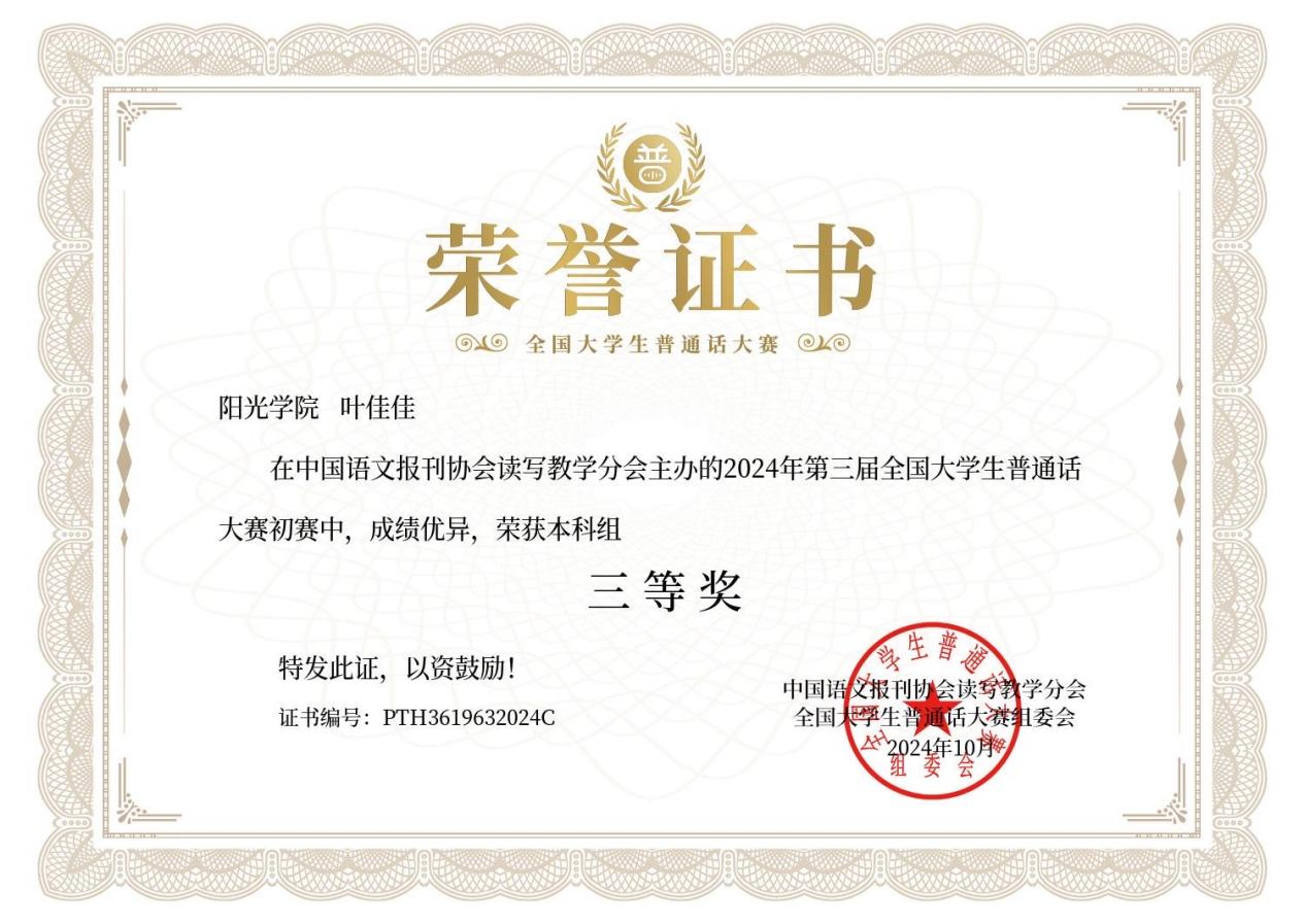 (3)2023级广告学(直播方向)专升本④班叶佳佳同学荣获三等奖