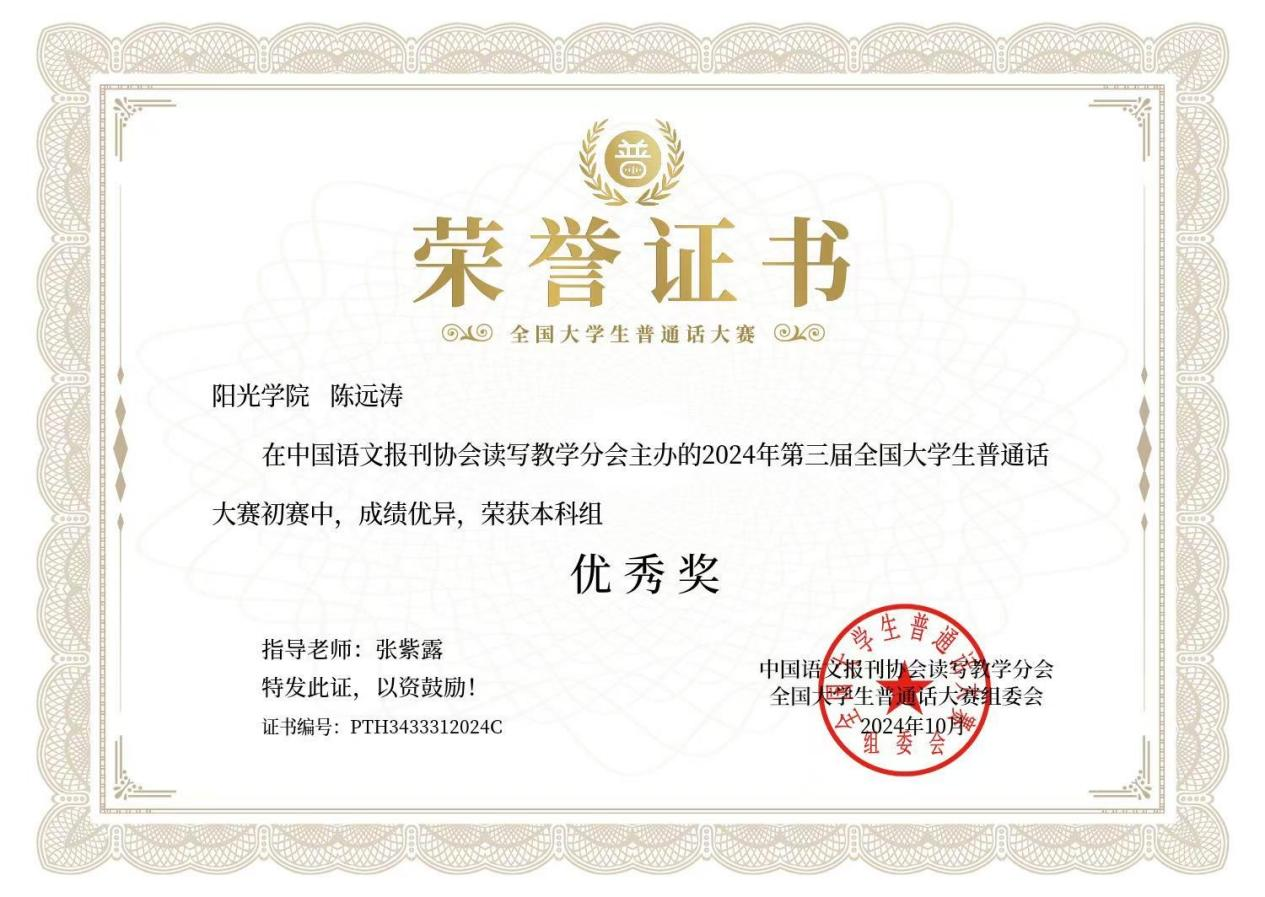 (6)2023级广告学(直播方向)专升本①班陈远涛同学荣获优秀奖