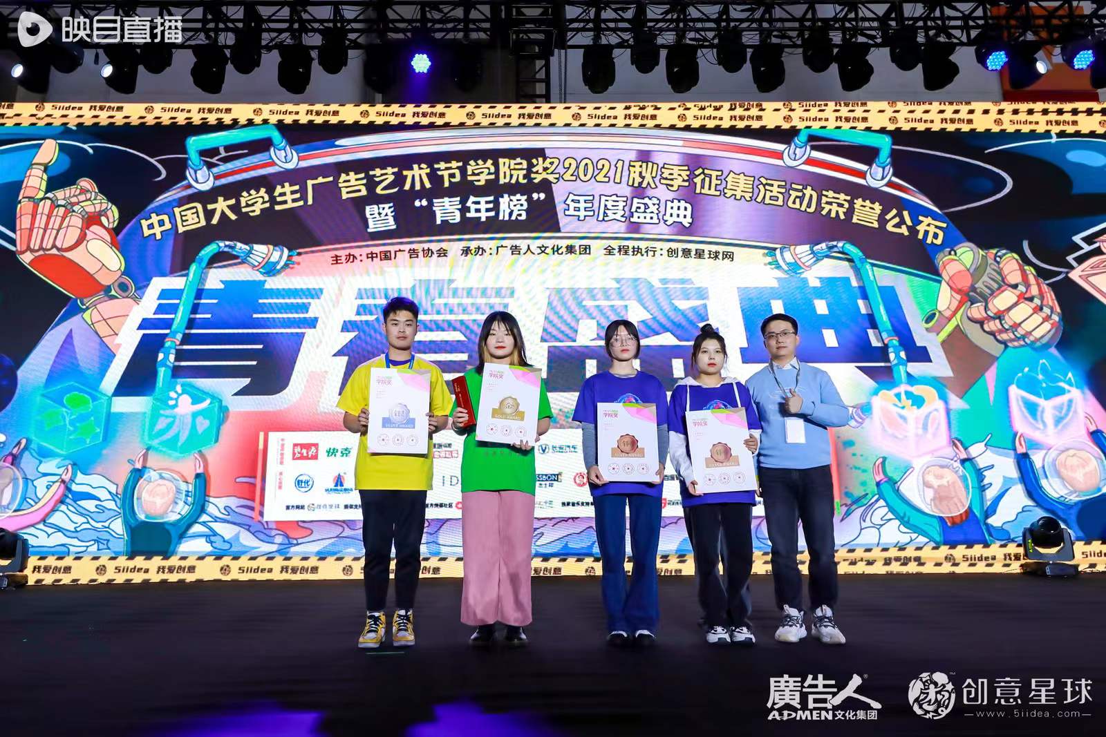 2021年12月12日,第28届中国际广告节中国老员工广告艺术节公司奖2021秋季征集活动荣誉公布暨“青年榜”年度盛典在厦门国际会展中心圆满落幕。公司两支优秀的团队在本次比赛中凭借出色稳定的发挥脱颖而出,其中2019级广播电视编导专业严彬睿主创的《我的潮酷我做主》获得2021秋季公司奖常规赛金奖、企业奖品诺“PINO新风尚”金奖;2020级广播电视编导专业张泽瑞主创的《花YOUNG》获得2021秋季公司奖常规赛银奖。