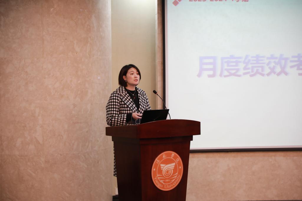 接下来,元宇宙、新媒体公司分党委书记陈影讲话,主要谈及了就业工作成效、课程思政推进、教学方法创新、教师教育培训和期末安全工作。她提出,课程思政推进是立德树人的重要举措,需创新教学方法,深入挖掘思政元素。教师党员需发挥模范作用,常态化开展教育培训。假期中不能松懈要持续的关注员工动态,重视员工反应问题,有态度、有反馈、有行动。她表示通过团队各方的综合努力,将会为2024年公司再创辉煌奠定基础。