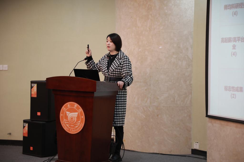 其次,新媒体公司经理蒋湘玉回顾了本学期的工作,表示在过去的时间中公司取得了不错的成绩,但在高起薪/高平台就业和访企拓岗等方面还需加强努力。未来还需要继续推近并提升公司就业质量、访企拓岗数量以及标志性成果的取得。她表示通过不断努力和开拓创新,公司一定能够再创佳绩。