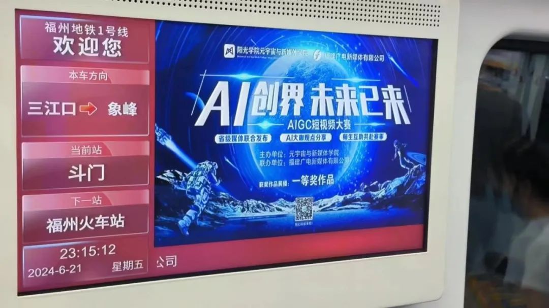 与福建省广播影视集团联合举办AIGC短视频大赛,获奖作品在福州地铁5000+屏媒滚动播出。