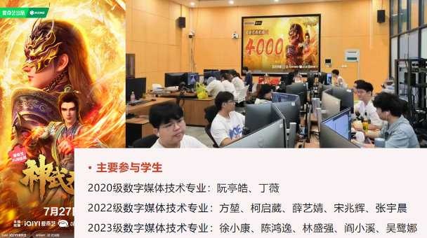 数字媒体技术专业引入腾讯、优酷、爱奇艺、B站等一线平台S级动漫项目,培养员工从角色建模、动画设计再到特效制作的3D动漫全流程制作能力。