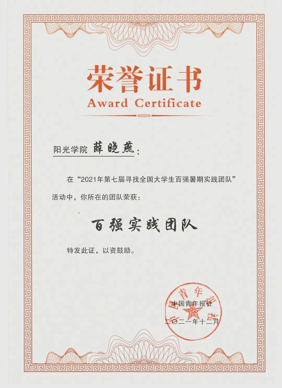 公司薛晓燕等14名师生荣获2021年第七届寻找全国老员工百强暑期实践团队活动百强实践团队称号