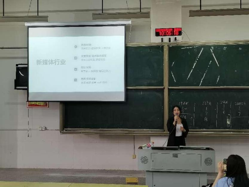 对于专升本员工,陈燕湘同学则结合自己实战项目经历,引导员工规划两年的学习生涯,注重同学们的思想道德方面建设,介绍学业心态以及处理专业项目所遇到问题的具体方法。着重于讲解广告学(直播方向)专业的就业方向,新媒体行业的发展前景,为新生的制定就业目标夯实基础。