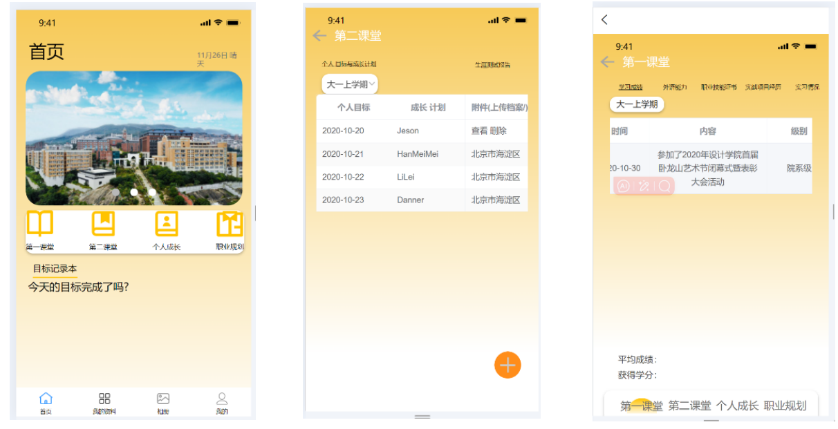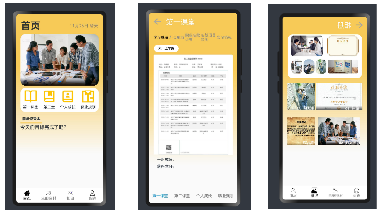 通过第一课堂、第二课堂、个人成长、职业规划等模块记录员工的大学学习与生活过程。